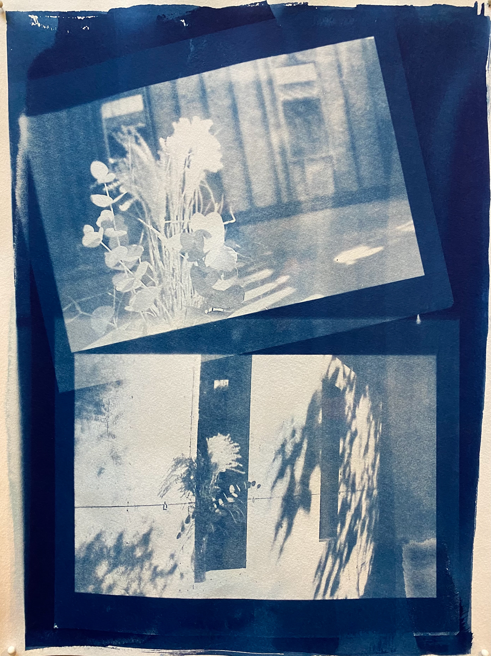Cyanotype exposure prints created using 35mm b&w film negatives. (2021)